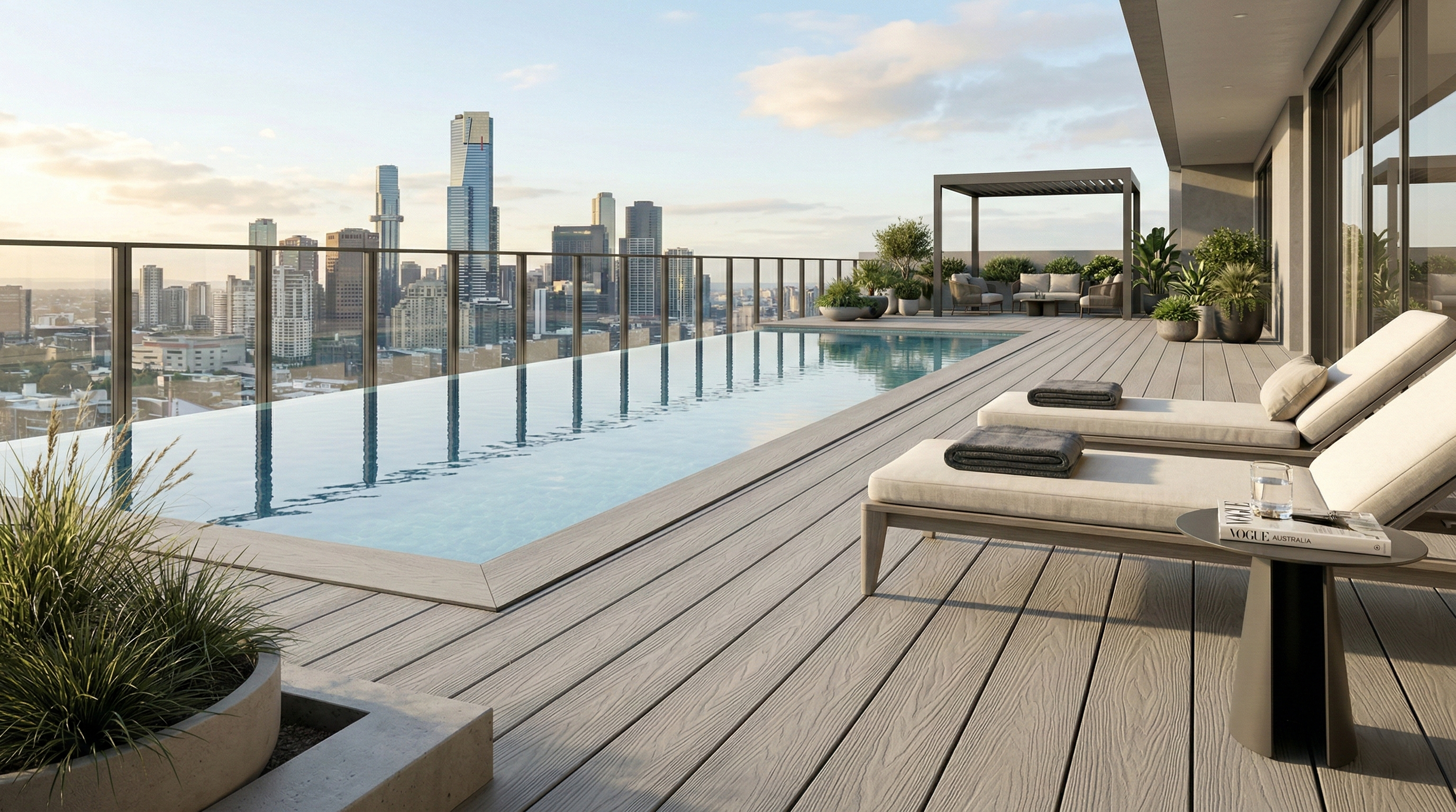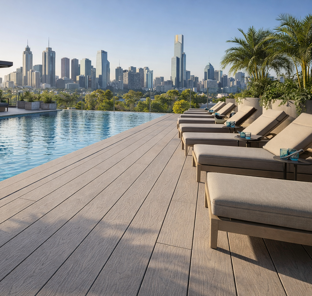 GripLock Composite Decking delivers the natural look of timber with added comfort and safety underfoot. Designed with a soft elastomer-coated surface and durable co-extruded construction, it provides enhanced slip resistance and impact absorption, making it ideal for pool surrounds, aged care, and childcare environments. Easy to install and requiring no staining or ongoing maintenance, GripLock combines a realistic wood-grain finish with resistance to rot, moisture, and pests — offering a low-maintenance decking solution built for high-use spaces.