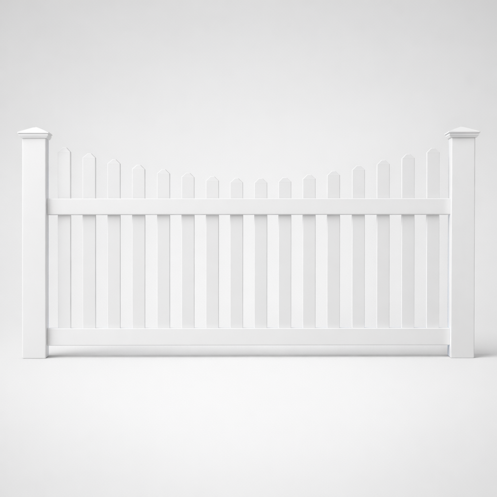 Scalloped picket profile enhances residential frontages with classic character and visual softness.Low maintenance ownership